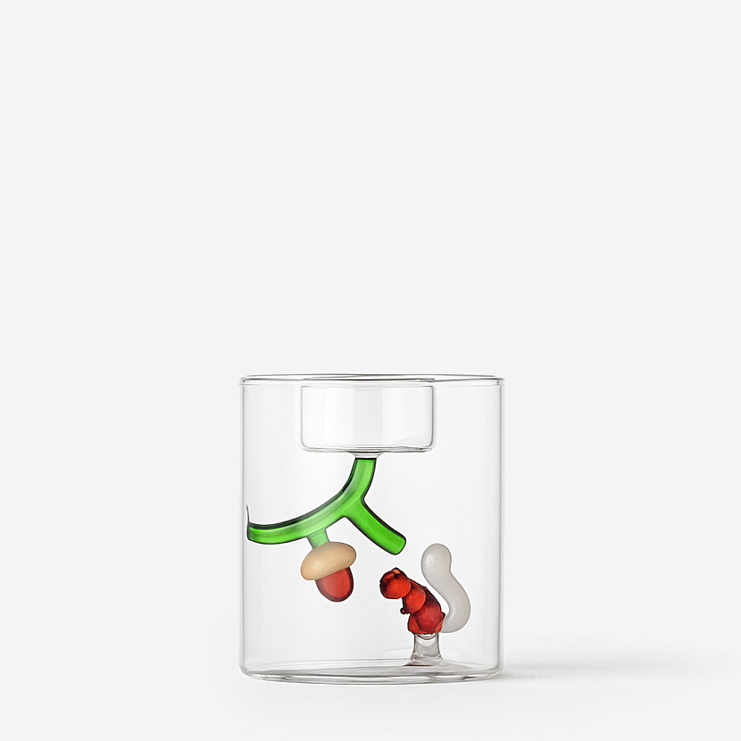 Подсвечник Acorn из коллекции Acorns итальянского бренда Ichendorf. Предназначен для чайной свечи. Дизайн разработан Алессандрой Бальдерески (Alessandra Baldereschi). Изделие из выдувного стекла с яркой фигуркой белочки идеально в качестве подарка.