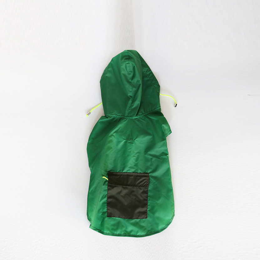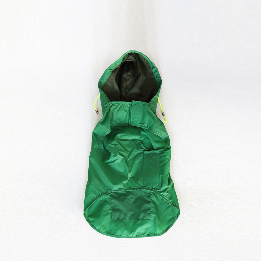 Дождевик для собак, представлен в размере 2. Изделие изготовлено из непромокаемой ткани зелёного цвета, на спинке расположено отверстие для поводка. Удобный капюшон защитит вашего питомца от непогоды.