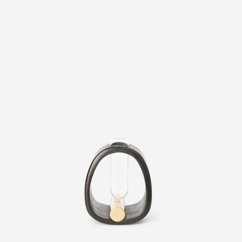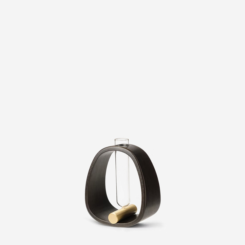 Ваза Vasin в размере L. Концептуальный предмет декора подчеркнёт эстетику минималистичных букетов. Рама изготовлена из окрашенного в коричневый бамбука, основание вазы — из латуни. Произведено на Тайване.