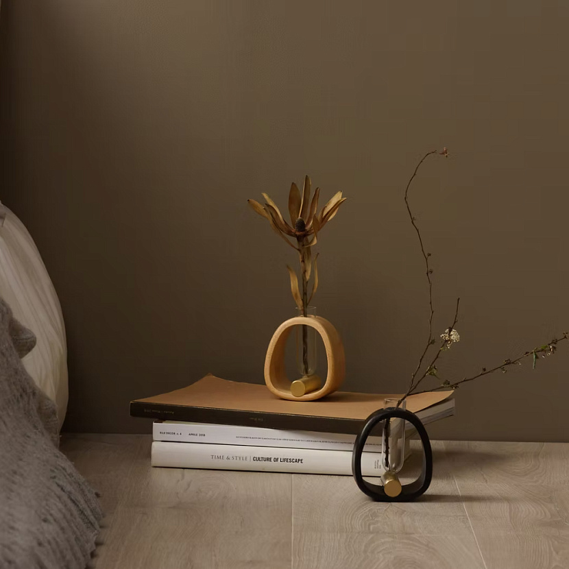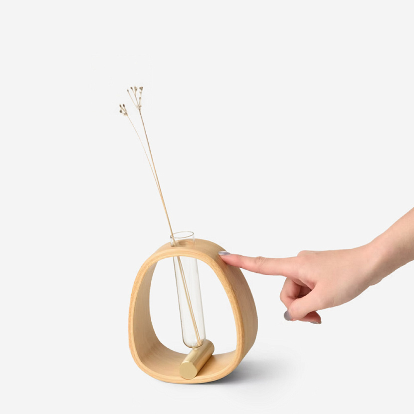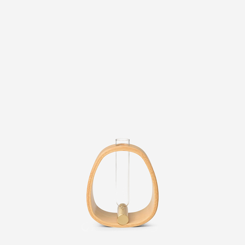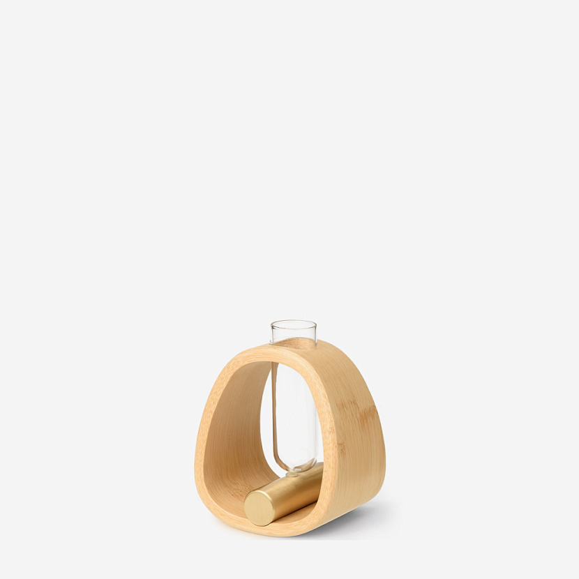 Ваза Vasin в размере L. Концептуальный предмет декора подчеркнёт эстетику минималистичных букетов. Рама изготовлена из неокрашенного бамбука, основание вазы — из латуни. Произведено на Тайване.