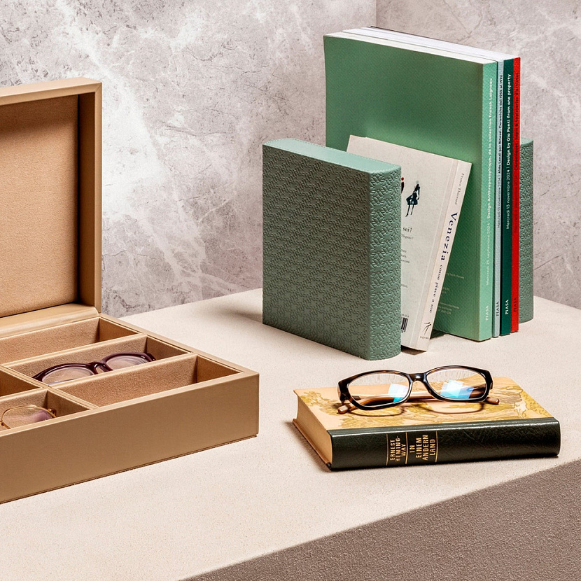 Выполнены из кожи с монограммой модного дома, на металлической основе. Цвет Agata. Элегантные аксессуары гармонично впишутся в интерьер библиотеки или кабинета.