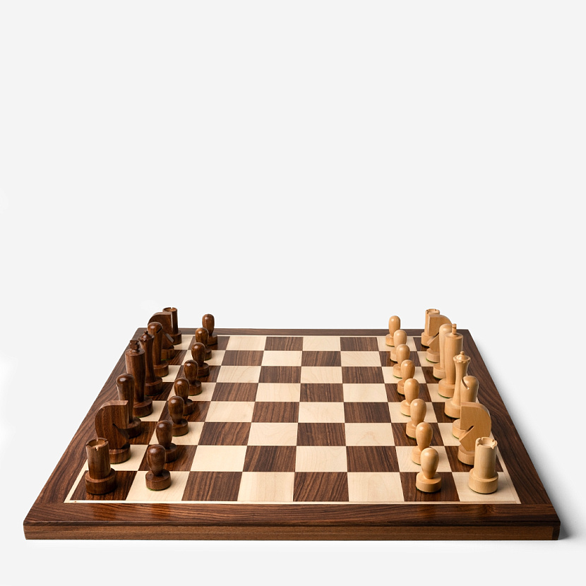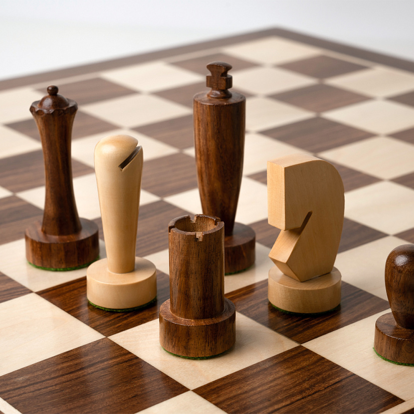 Unique Minimalist — шахматный комплект, вдохновлённый дизайнами немецких авангардистов начала прошлого века. Изготовлен из контрастной древесины.