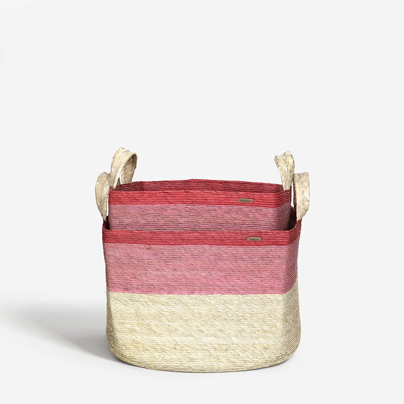 Набор двухцветных корзин Revistero от мексиканского бренда Makaua, в комплект входят два изделия размеров S и M. Цветовое решение — Flamingo. Корзины с ручками отлично подойдут для хранения белья или других вещей.