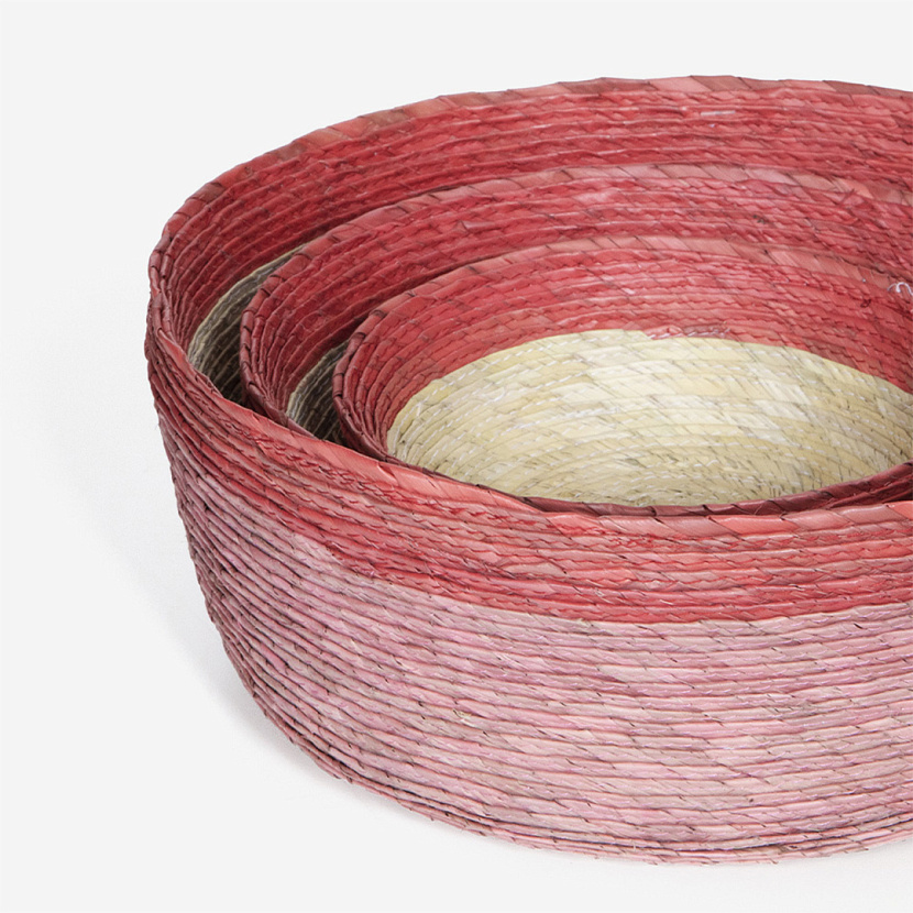 Набор двухцветных корзин Round от мексиканского бренда Makaua, в комплект входят три изделия размеров S, M и L. Цветовое решение — Flamingo. Небольшие корзины отлично подойдут для хранения мелочей, сервировки блюд или фруктов.