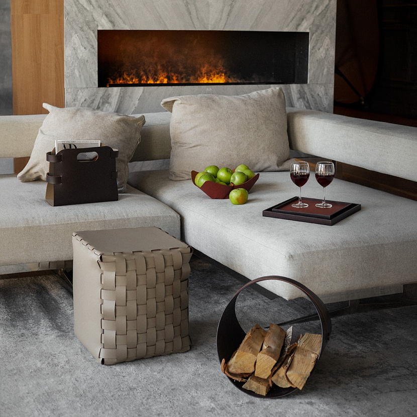 Дровница Ben в отделке «венге». Оригинальный аксессуар может использоваться как для хранения дров, так и для размещения журналов и книг. Благодаря минималистичному дизайну успешно впишется в разнообразие интерьеров.