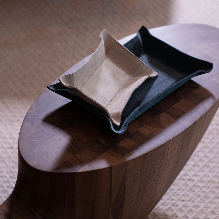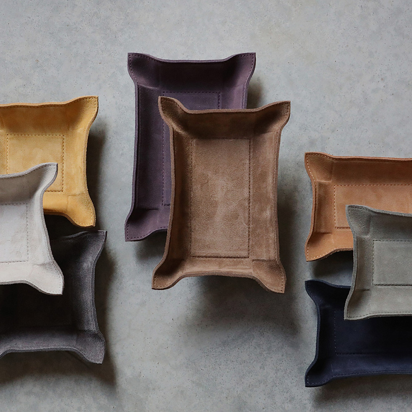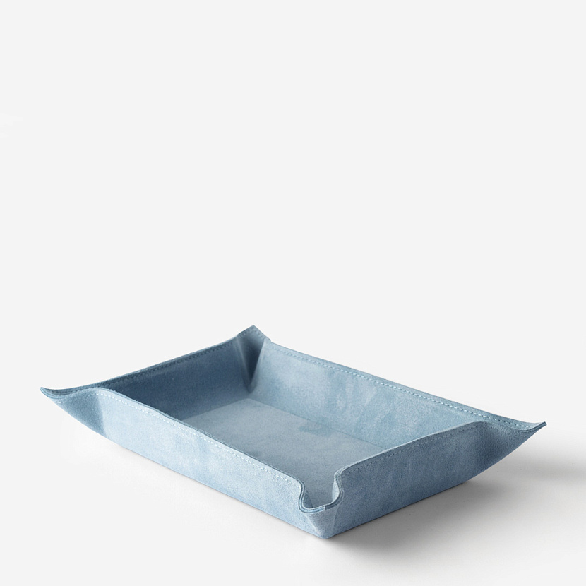 Мелочница Jack прямоугольной формы со сгибающимися бортиками. Изготовлена из замши оттенка Wave, размер M. Стильный и удобный аксессуар для хранения аксессуаров, украшений или ключей.