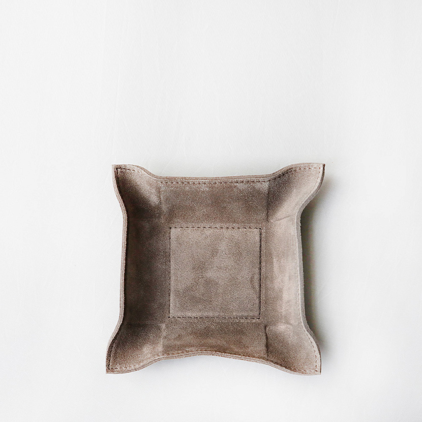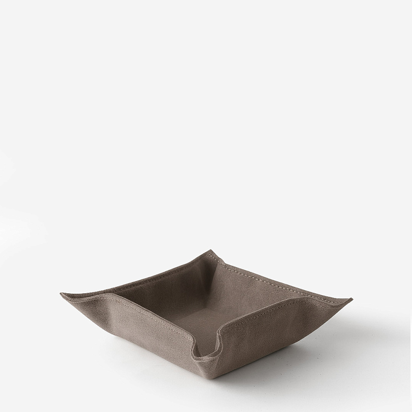 Поднос Jack квадратной формы со сгибающимися бортиками, изготовлен из высококачественной замши оттенка «smoke» итальянскими мастерами. Модель размера S.