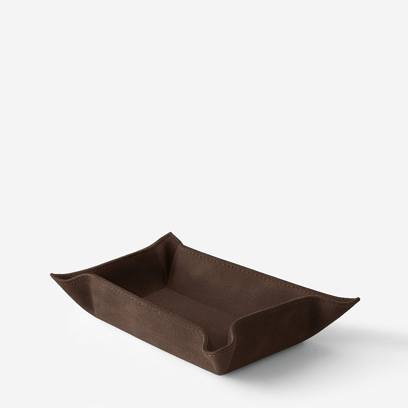 Поднос Jack прямоугольной формы со сгибающимися бортиками, изготовлен из высококачественной замши оттенка «chocolate» итальянскими мастерами. Модель размера S.
