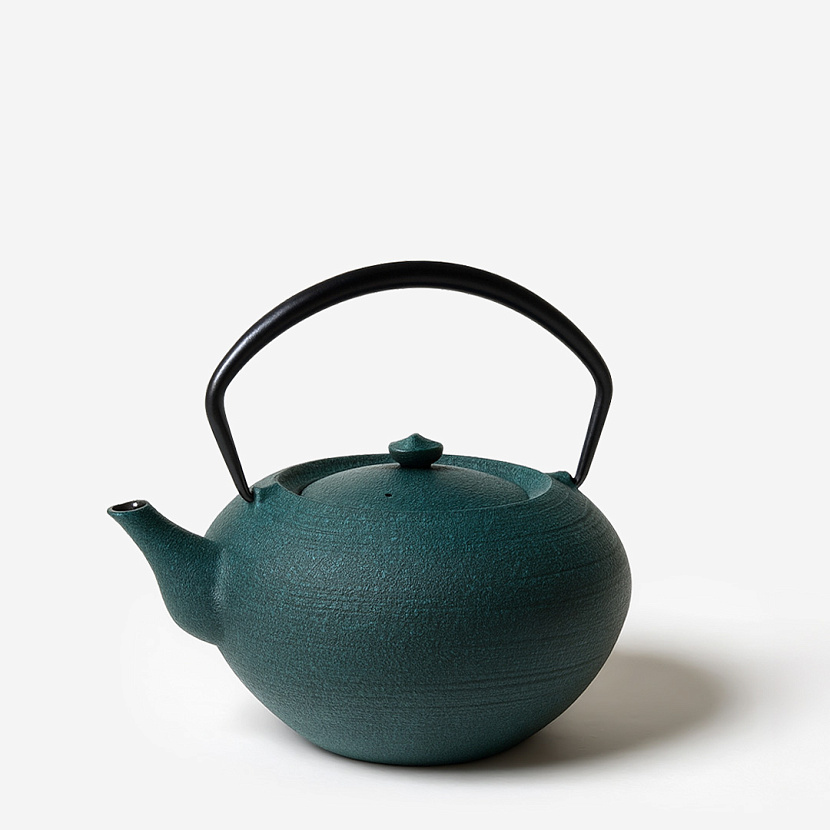 Заварочный чайник Hiratsubo из чугуна. Размер L. Изделие отличает шершавая поверхность сунахада снаружи, окрашенная в зелёный оттенок. Чайник идеально подойдёт для чаепития компании из шести человек.