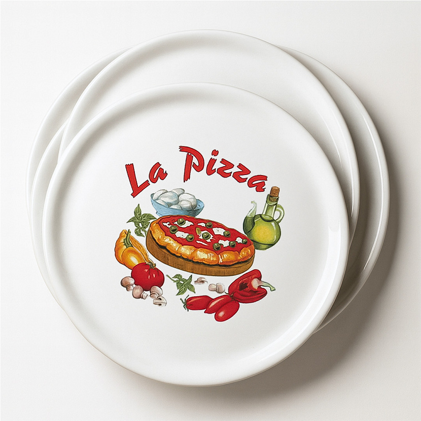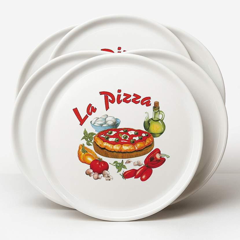 Набор из шести фарфоровых тарелок Pizza of Tradition для пиццы, на изделия нанесён рисунок с ингредиентами и готовой пиццей. Тарелки подчёркивают эстетику итальянской традиции и подойдут как для ресторанной подачи, так и для домашнего использования.