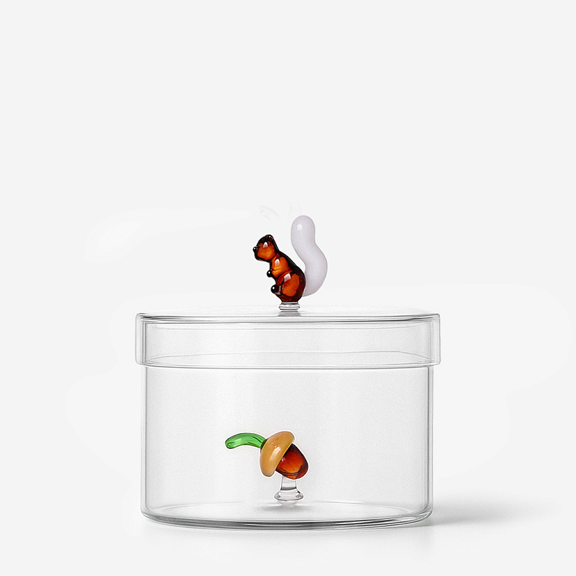 Конфетница с крышкой Acorn из коллекции Acorns итальянского бренда Ichendorf. Дизайн разработан Алессандрой Бальдерески (Alessandra Baldereschi). Изделие из выдувного стекла с фигурками внутри и на крышке идеально подойдёт в качестве подарка и станет настоящим украшением праздничного стола.