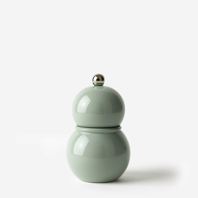 Мельница для специй Chubbie из лакированной в светло-зелёный цвет древесины. Подходит для каменной соли и чёрного перца, не рекомендуется использовать с более мягкими формами соли и розовым перцем.
