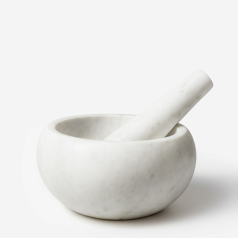 Ступка с пестиком White Marble от американского бренда Hankar. Изделия изготовлены из мрамора белого цвета с едва заметными прожилками. Незаменимый аксессуар для любой кухни в современном стильном исполнении.