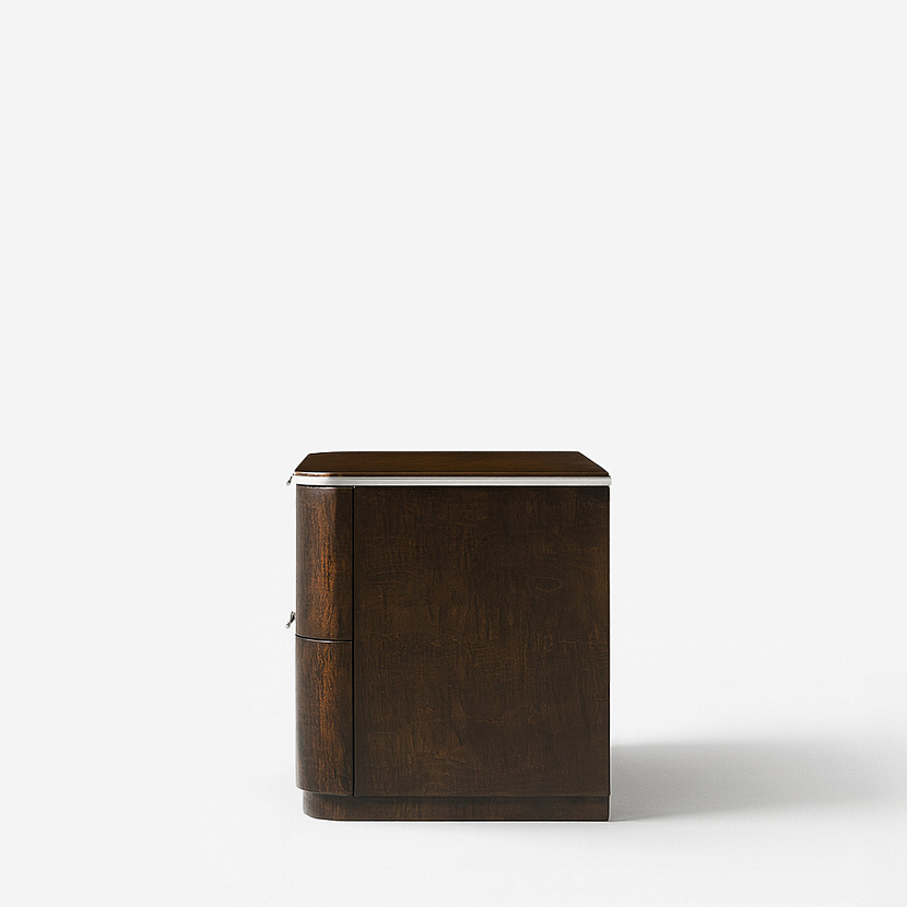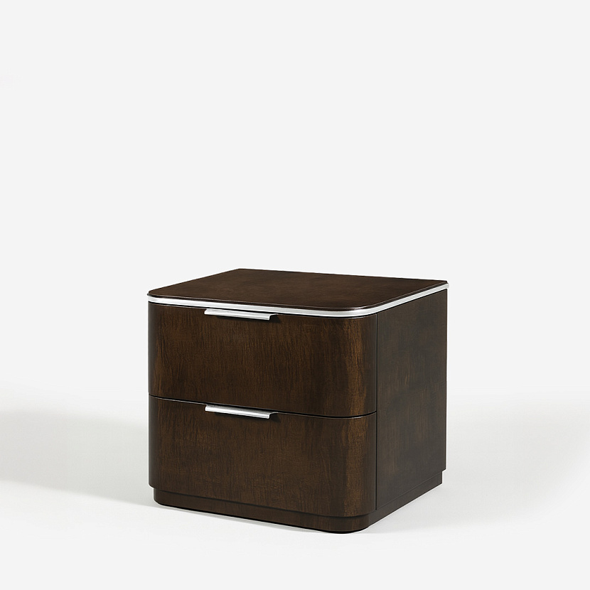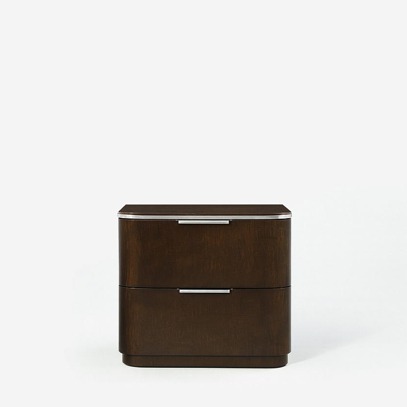 Комплект из 2 прикроватных тумб Husdon с двумя ящиками. Корпус из дуба в отделке кленовым шпоном тёмного оттенка дополнен фурнитурой из брашированной нержавеющей стали. Дизайн модели воплощает собой приглушённую классическую элегантность.