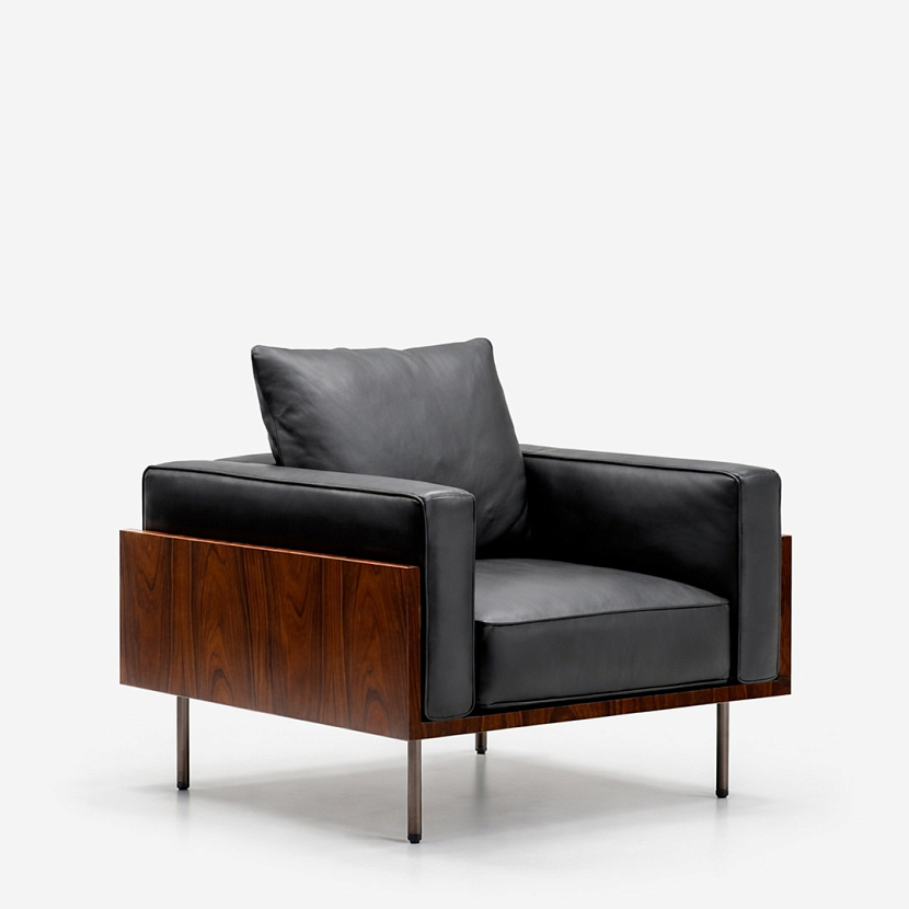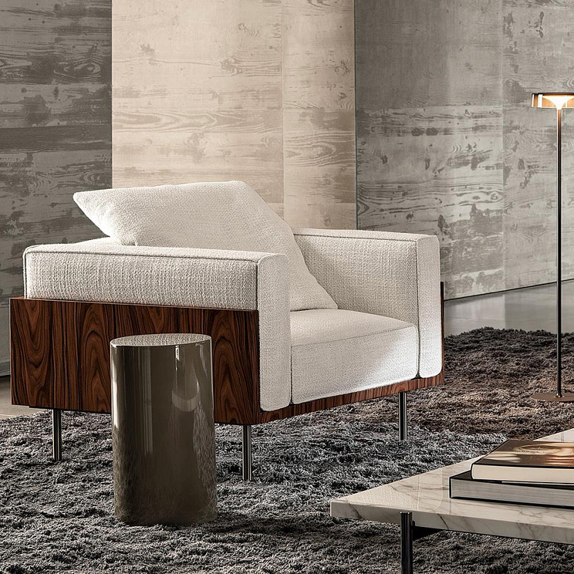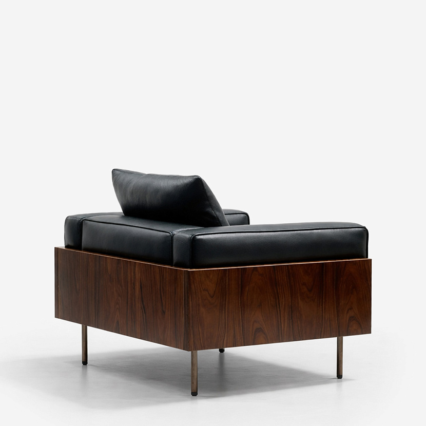 Кресло Brasilia отличается строгой архитектурной формой и минималистичной эстетикой, вдохновленной бразильским модернизмом 1950-х годов. Дизайн Marcio Kogan / Studio MK27 построен на контрасте между четкой деревянной рамой и мягкими пуховыми подушками сиденья и спинки. Сочетание дерева, металла и текстиля подчеркивает выразительность материалов и формирует элегантный, современный силуэт модели.