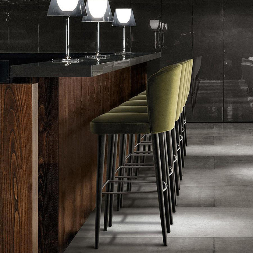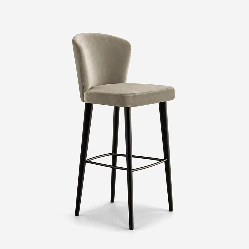 Барный стул Aston Stool — часть коллекции Aston, разработанной Rodolfo Dordoni для Minotti. Модель отличается мягким сиденьем и элегантной архитектурой с характерными коническими ножками.