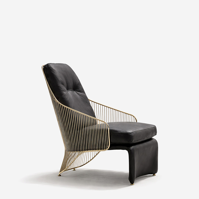 Кресло Colette Bergère отличается выразительной высокой спинкой и элегантным металлическим каркасом. Дизайн Rodolfo Dordoni вдохновлен эстетикой mid-century и сочетает экспериментальную форму с утонченной декоративной графикой. Внешняя металлическая структура создается сложной технологией каландрирования и сварки в более чем 300 точках, а мягкие подушки сиденья и спинки идеально повторяют форму конструкции, обеспечивая высокий уровень комфорта.