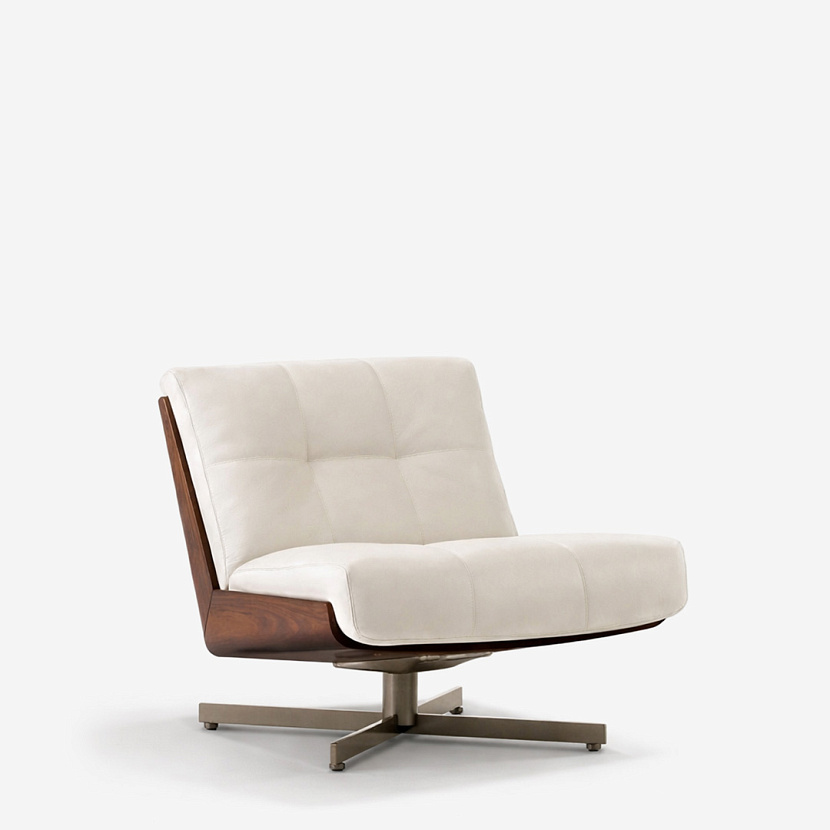 Кресло Daiki объединяет японскую эстетическую сдержанность и дух американского mid-century. Дизайн Marcio Kogan / Studio MK27 построен вокруг изогнутой деревянной оболочки, выполненной из двух элементов, соединённых под углом. Модель предлагается в версиях с подлокотниками и без, а также на ножках или с поворотным основанием swivel, что делает кресло универсальным для современных интерьеров.