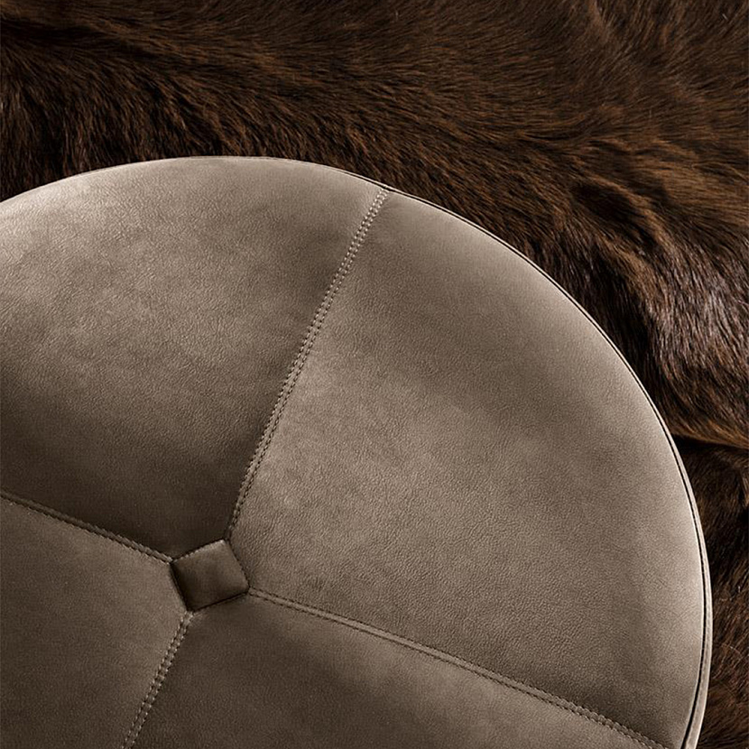 Обивка: ткань или кожа, полностью съемная; декоративная прострочка и центральная пуговица.