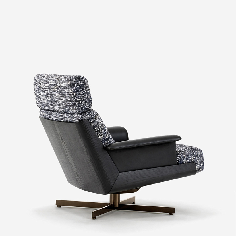 Кресло Daiki Bergère отличается выразительной высокой спинкой и характерной деревянной оболочкой. Дизайн Marcio Kogan / Studio MK27 вдохновлен японской эстетикой и традициями mid-century. Изогнутая оболочка из двух элементов, соединённых под углом, формирует комфортную посадку и скульптурный силуэт. Модель доступна в версиях с подлокотниками и без, а также на ножках или с поворотным основанием swivel.