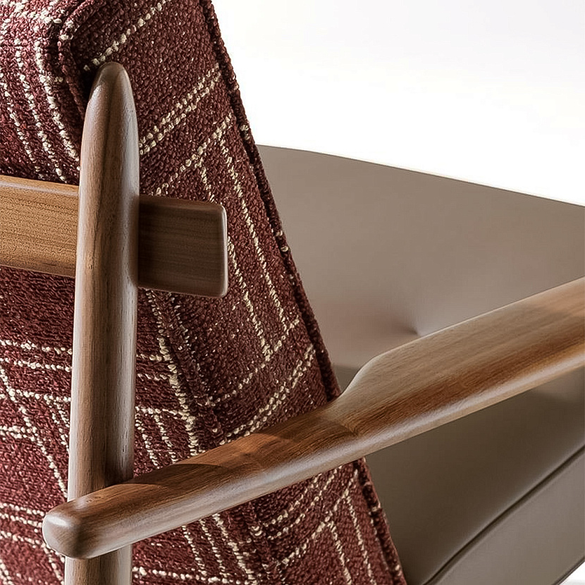 Кресло Trio отличается легкой архитектурной формой и изящной деревянной рамой. Дизайн Marcio Kogan / Studio MK27 вдохновлен традициями бразильского мебельного мастерства и сочетает три материала — дерево, металл и мягкую обивку. Тонкая конструкция подчеркивает графичность силуэта, а мягкое сиденье и спинка обеспечивают комфорт и тактильную выразительность модели.