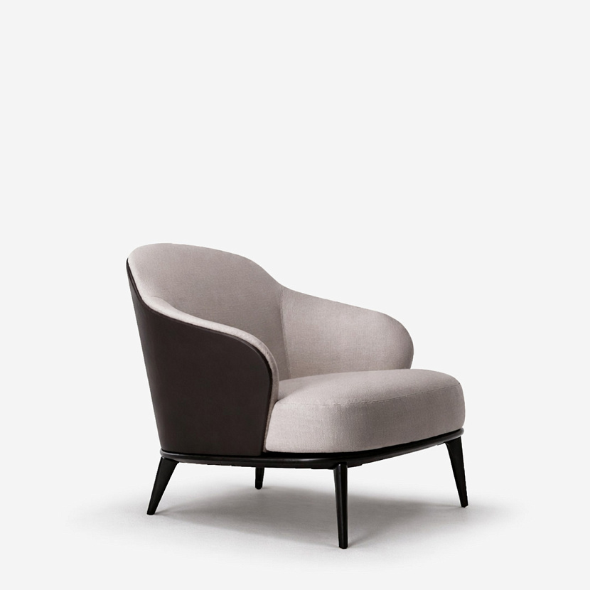Кресло Leslie отличается мягкой обволакивающей формой и элегантными пропорциями, создающими ощущение уюта и приватности. Дизайн Rodolfo Dordoni основан на сочетании скульптурной оболочки и аккуратной портновской работы с кожей, полностью покрывающей внешнюю часть кресла. Модель опирается на изящную базу из массива ясеня, которая подчеркивает легкость конструкции и утонченный характер коллекции Leslie.