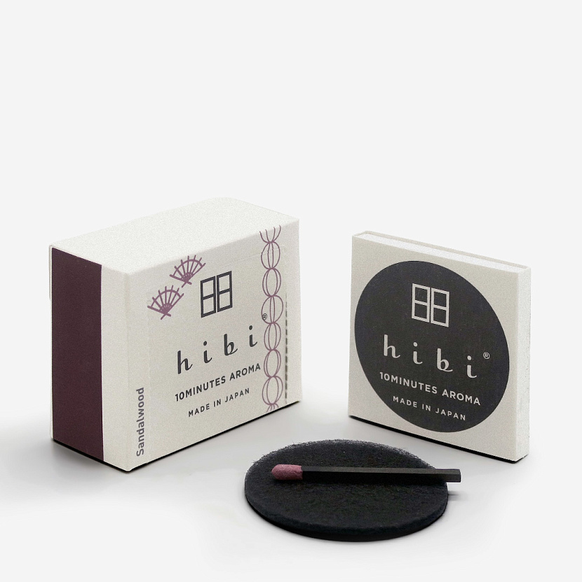 Набор для ароматерапии Sandalwood Large Box от японского бренда Hibi. В набор входит коробка, 30 ароматических спичек, пропитанных эфирным маслом сандала, и специальный огнеупорный коврик, благодаря которому можно зажечь благовоние прямо внутри коробочки.
