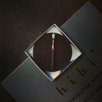 Hibi — нишевый японский бренд, выпускающий наборы для ароматерапии c необычным форм-фактором, — спички, пропитанные эфирным маслом. В комплект входит специальный огнеупорный коврик, что позволяет зажечь благовоние прямо внутри коробка.