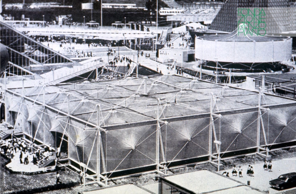 Павильон итальянской промышленности, созданный Ренцо Пиано совместно с Ричардом Роджерсом в 1969 году для Всемирной выставки в Осаке, стал его ранней экспериментальной работой, где инженерная логика переосмыслялась как эстетика. Этот же принцип позже прославил Пиано с Центром Помпиду.