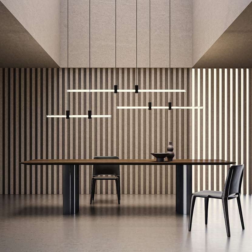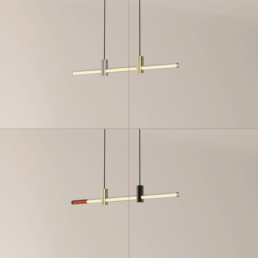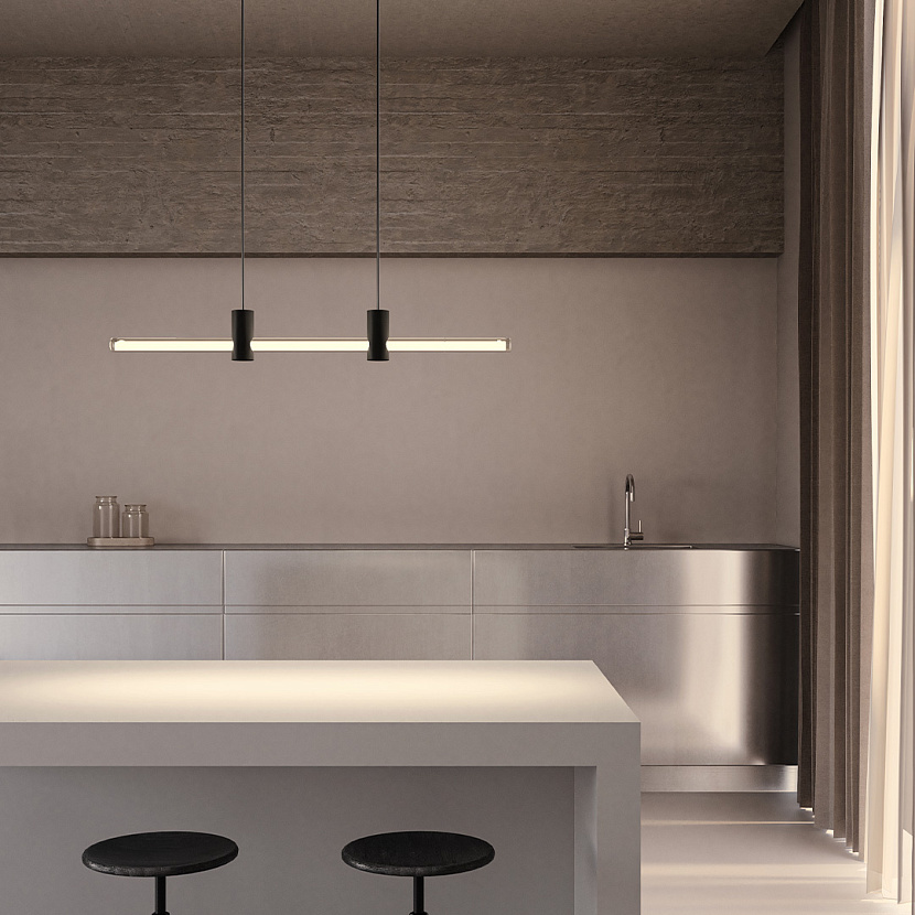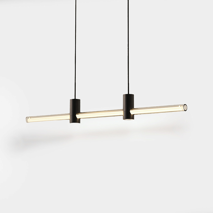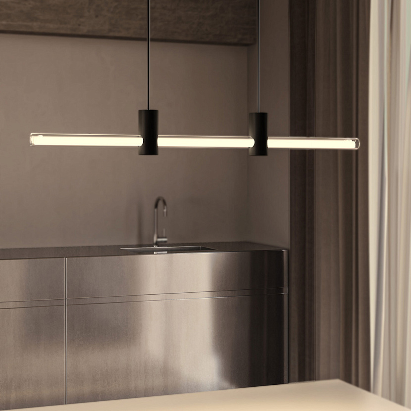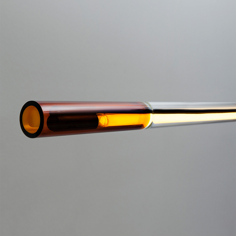 Отличительная особенность подвесного светильника Line — тонкий баланс лёгкого и массивного. Трубка из прочного боросиликатного стекла проходит сквозь бронзовые крепления, подчёркивая контраст материалов. Затемнение «под янтарь» усиливает визуальный эффект минималистичного изделия.
