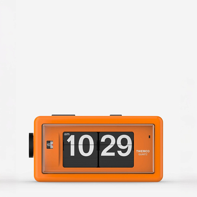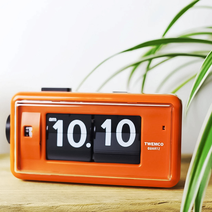 Настольные часы с будильником от TWEMCO, модель AL-30 в корпусе оранжевого цвета. 12-часовой формат времени, будильник повторяется каждые 10 минут. Культовое изобретение TWEMCO гармонично дополнит разнообразие интерьеров.