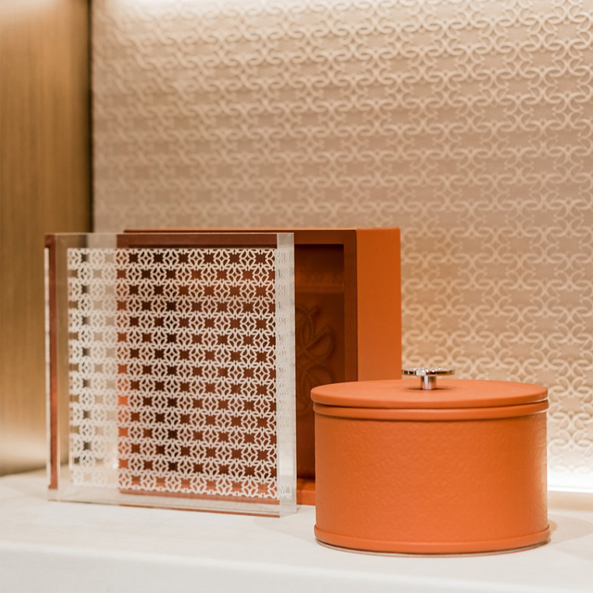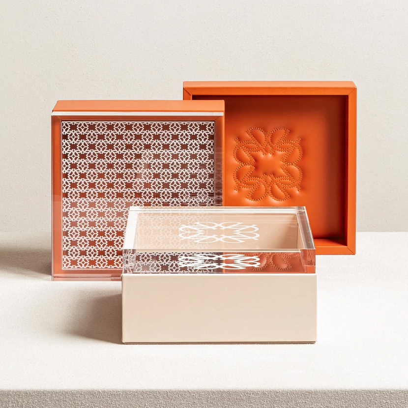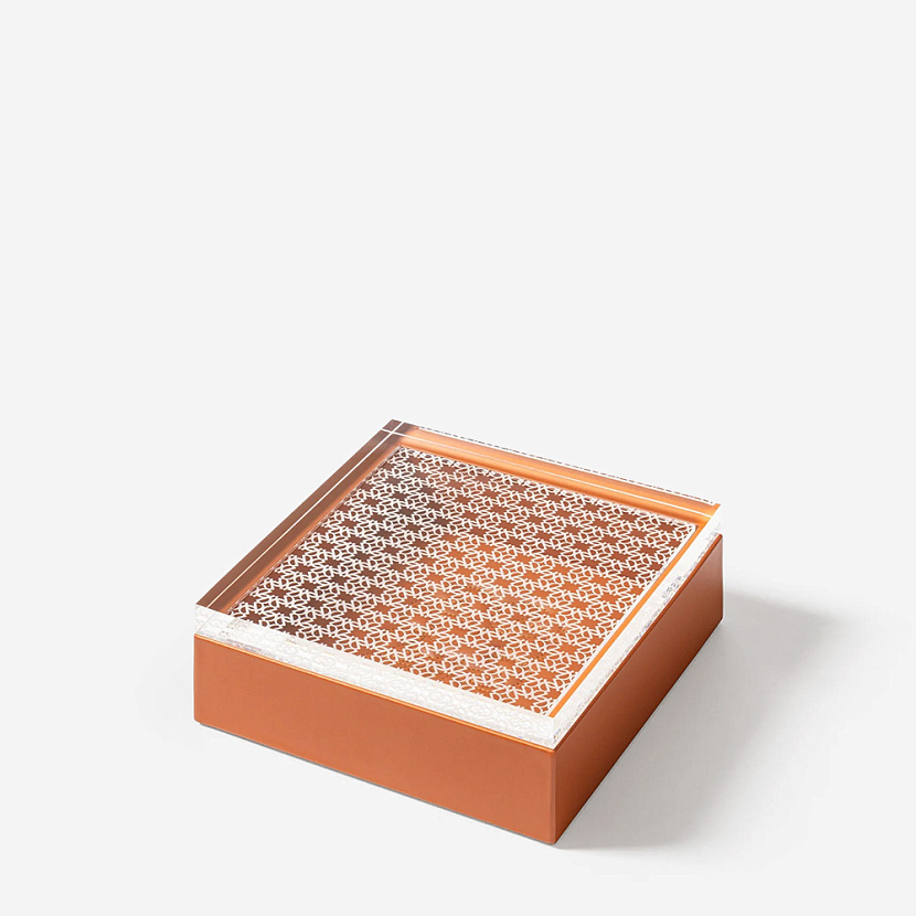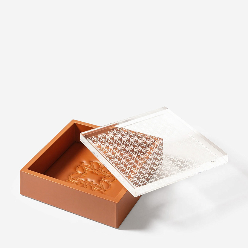 Шкатулка Monogram от Giobagnara из коллаборации с Elie Saab. Изготовлена из кожи, крышка из акрила с выгравированной монограммой модного дома. Цвет Passito. Эффектный аксессуар отлично подойдёт для хранения вещиц, таких как украшения или часы.