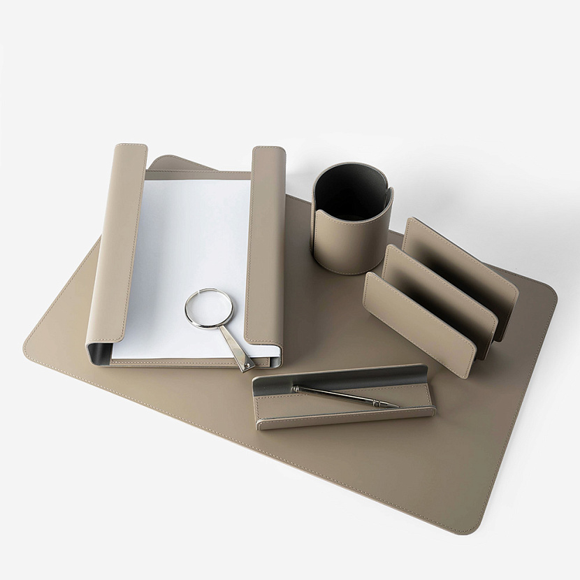 Письменный набор Tour Idea от Giobagnara, выполненный из кожи оттенка Mud.