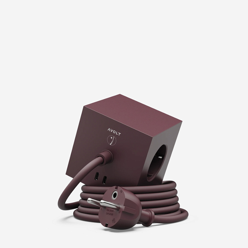 Square 1 USB-C — минималистичный удлинитель для дома, офиса и общественных пространств. Модель в цвете Mulberry Red выпущена в коллаборации с берлинским музеем дизайна Баухаус-Архив.