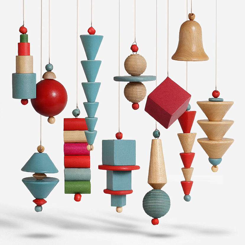 Ёлочные игрушки серии Bauhaus-era спроектированы в 1930-х архитектором эпохи Баухауса Йоханнесом Габриэлем. Чистые геометрические формы отсылают к костюмам авангардной балетной постановки Triadisches Ballett Оскара Шлеммера. В набор входят 12 игрушек, выполненных вручную из немецкого клёна.