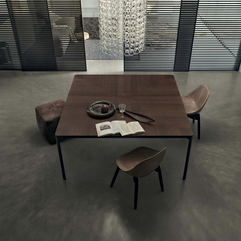 Разнообразие размеров и отделок позволяет использовать систему как обеденный стол, рабочий стол или стол для переговорных зон. Конструкция полностью разборная, с невидимыми соединениями литых алюминиевых элементов.
