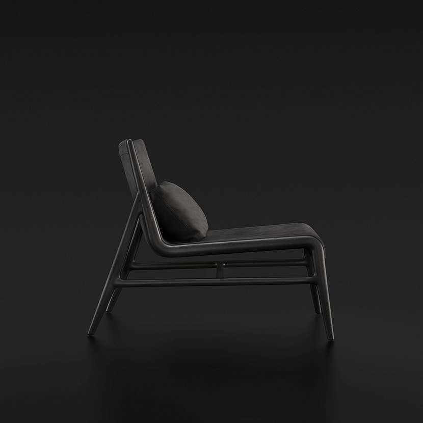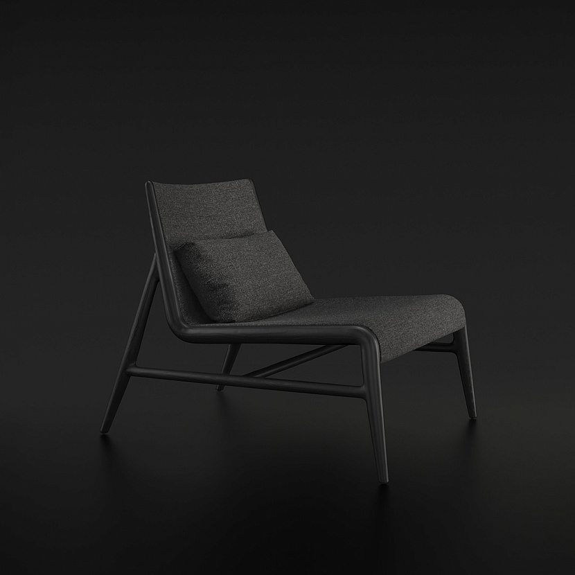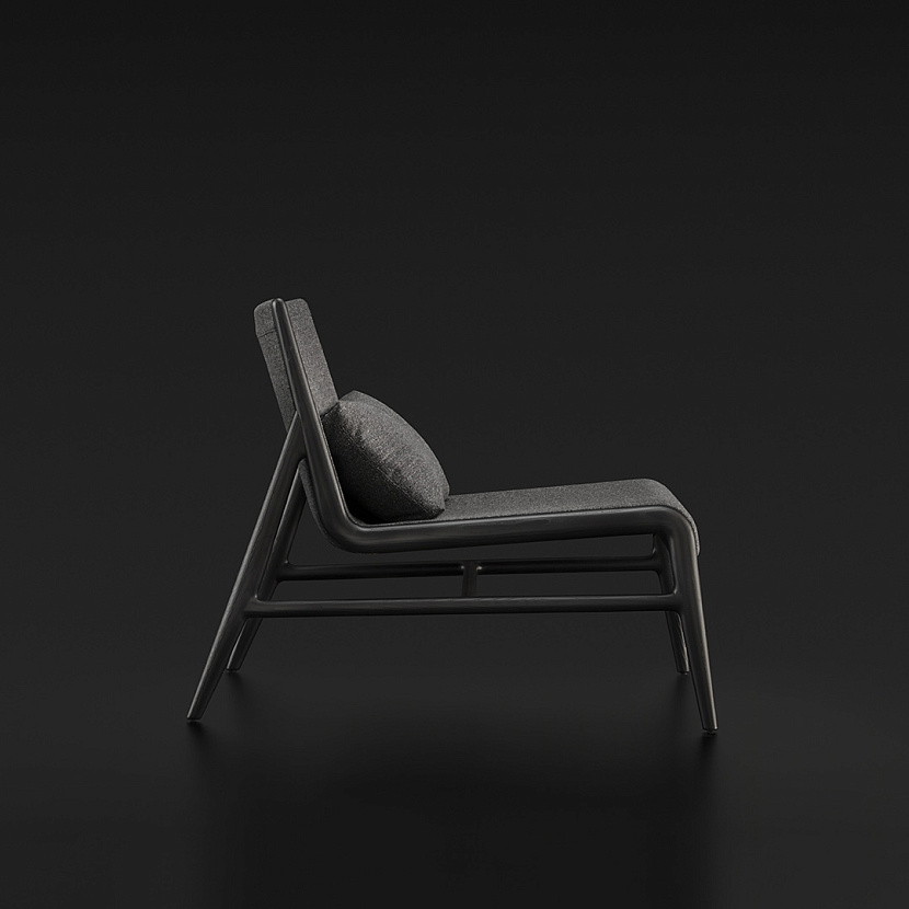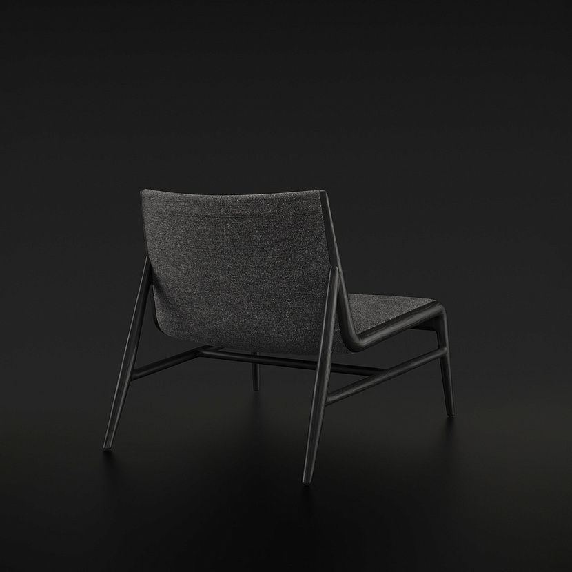 Конструкция основана на каркасе из массива дерева, который проходит по всей высоте изделия и формирует непрерывную графическую линию. В центральной части размещена мягкая оболочка сиденья и спинки с различной плотностью наполнения, обеспечивающей поддержку и комфорт.