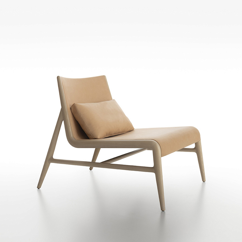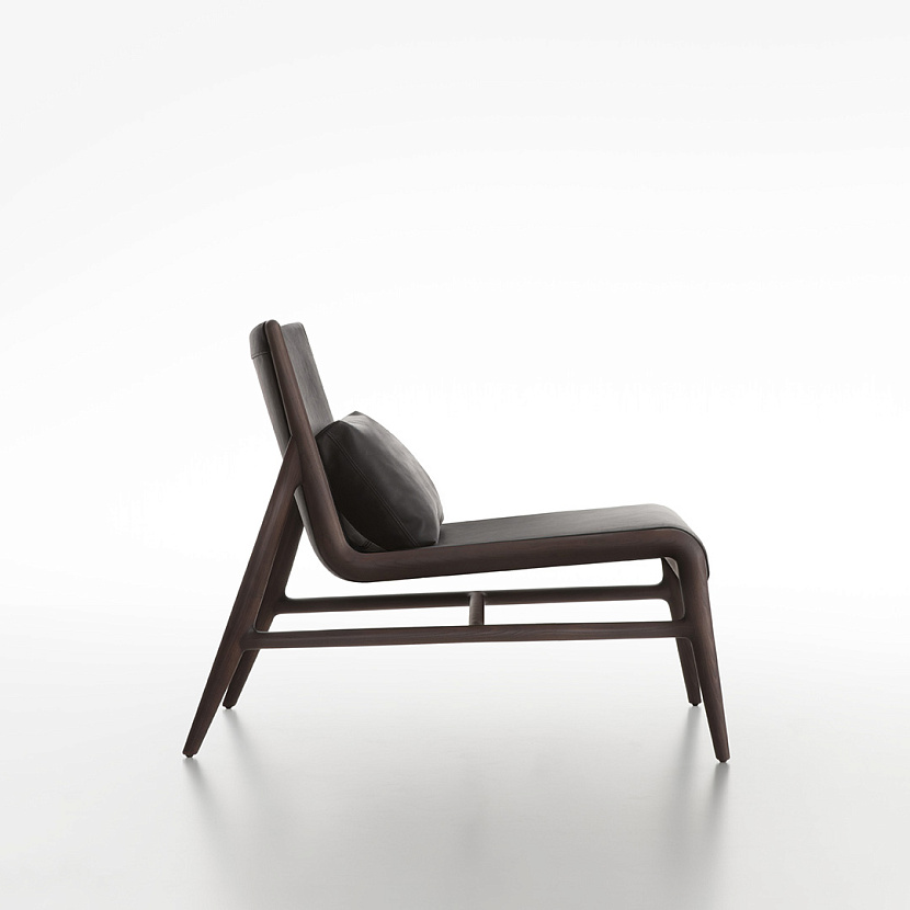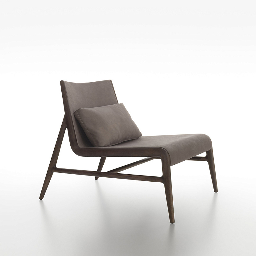 Встроенная система эластичных ремней в основании сиденья и поясничная подушка усиливают эргономику кресла. Комбинация дерева, ткани или кожи позволяет интегрировать модель в различные архитектурные сценарии интерьера.
