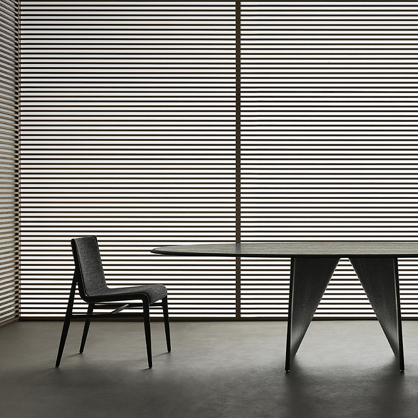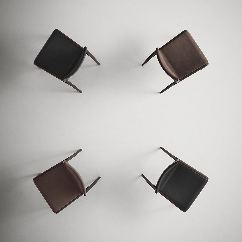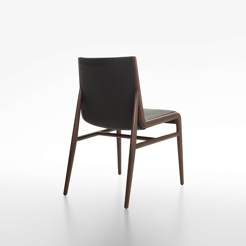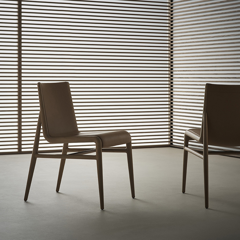 Sinua интегрируется в интерьеры столовых зон и кухонь, где требуется стул с выразительной деревянной конструкцией и мягкой посадкой.
