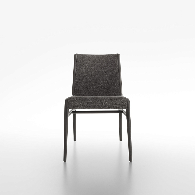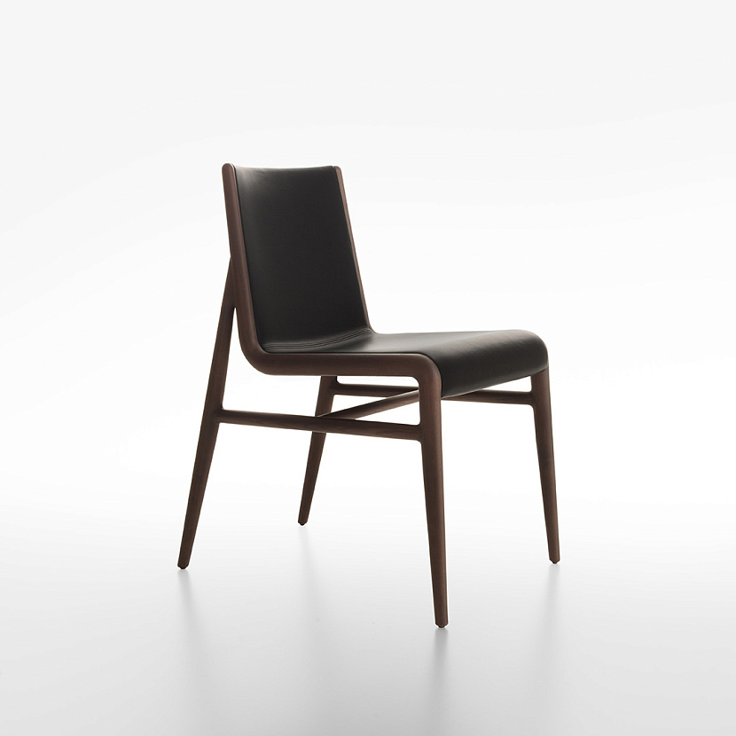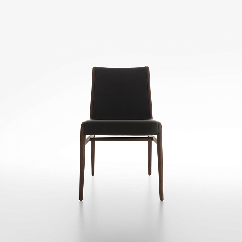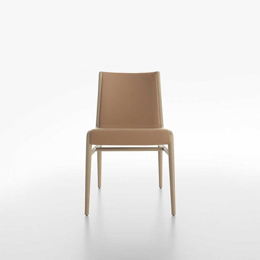 Конструкция Стул с несущей рамой из массива дерева. Центральная мягкая оболочка сиденья и спинки выполнена с различной плотностью наполнения и может быть обита тканью или кожей.