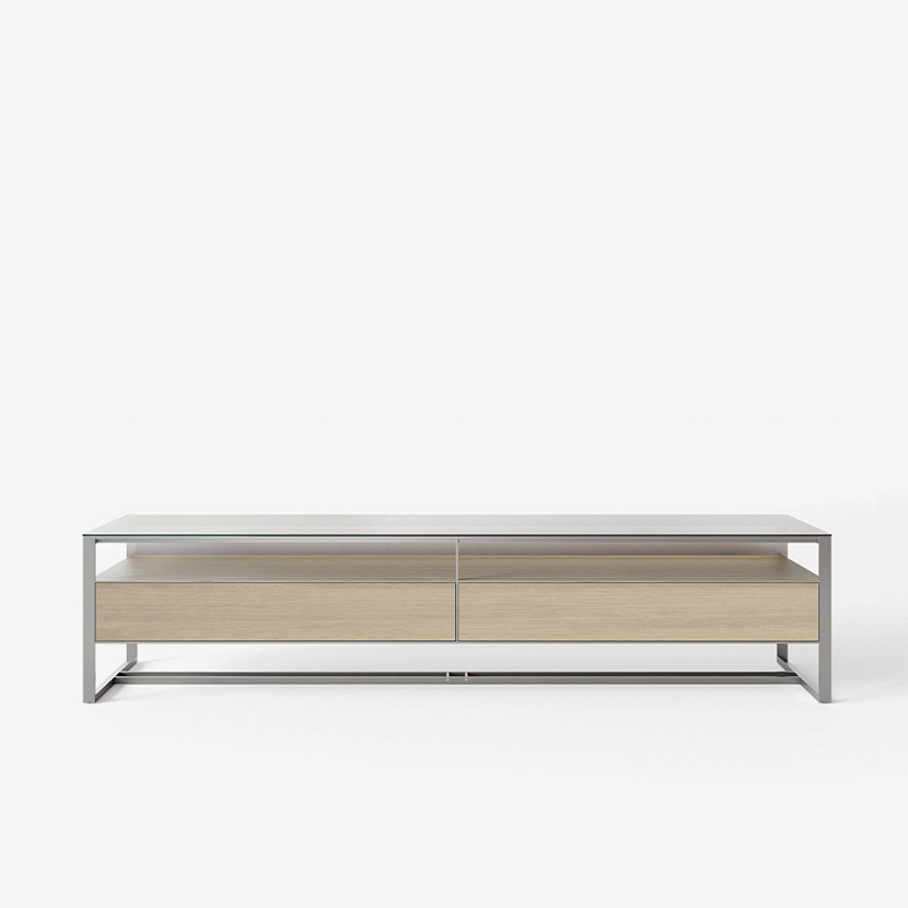 Консоль Rialto интегрируется в интерьеры гостиной зоны, где требуется лёгкая архитектурная консоль для организации хранения и композиции пространства.