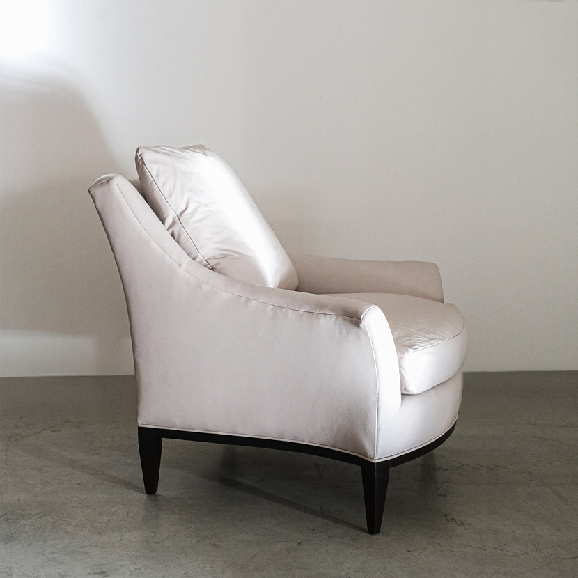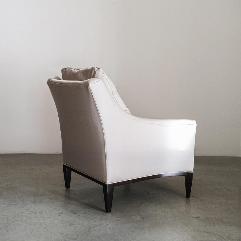 Кресло Riley от Theodore Alexander. Модель с корпусом из красного дерева в обивке кожей светлого оттенка. Минималистичное кресло с лёгкостью интегрируется в разнообразие интерьеров.
