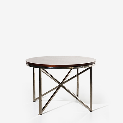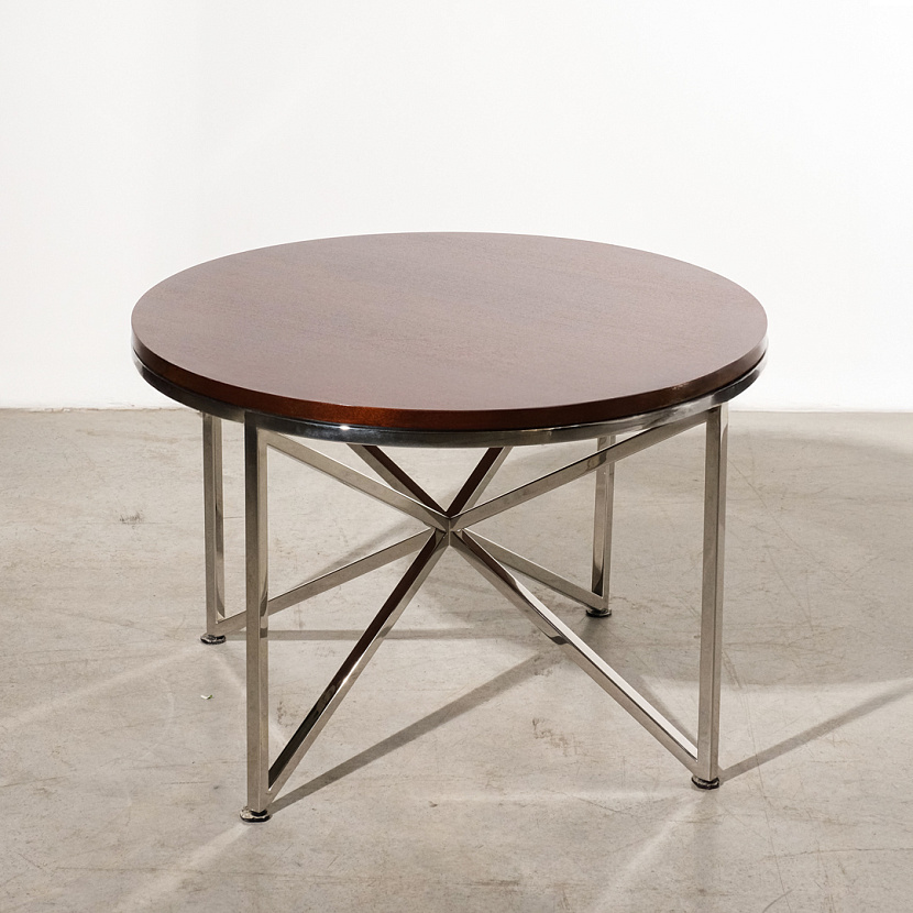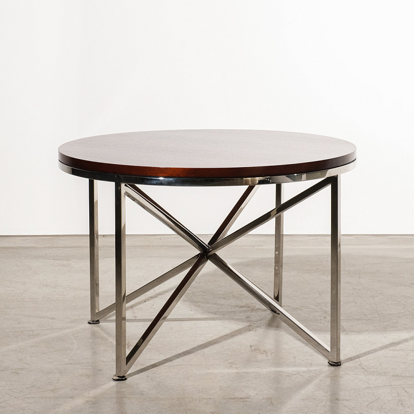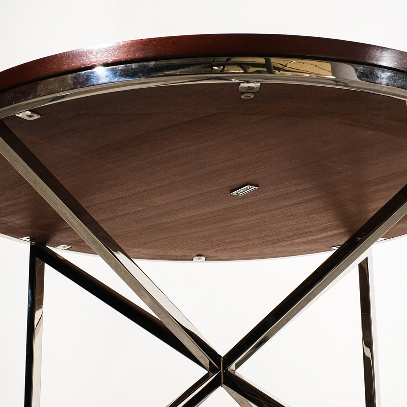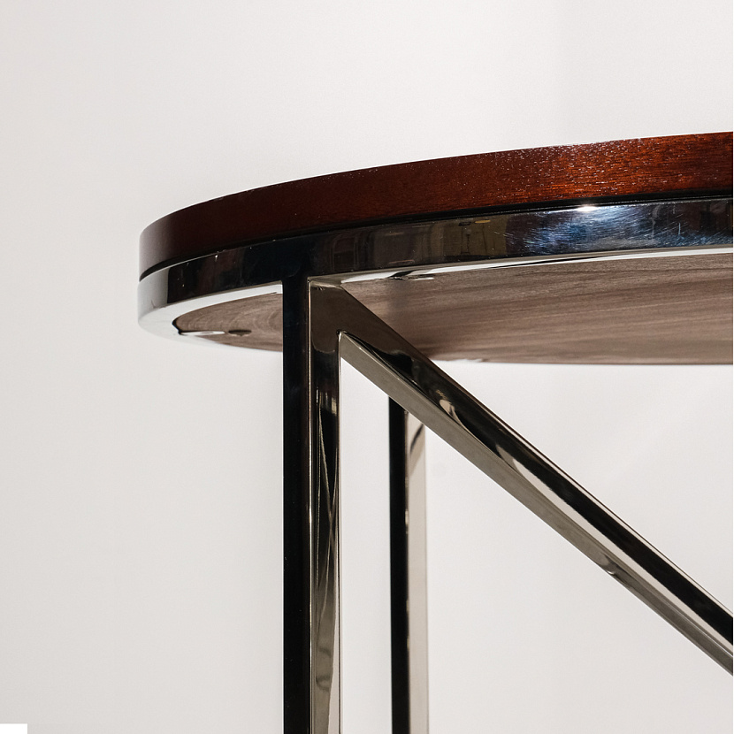 Приставной стол от американского бренда Decca Home. Столешница выполнена из ореха, ножки из прочного металла.
