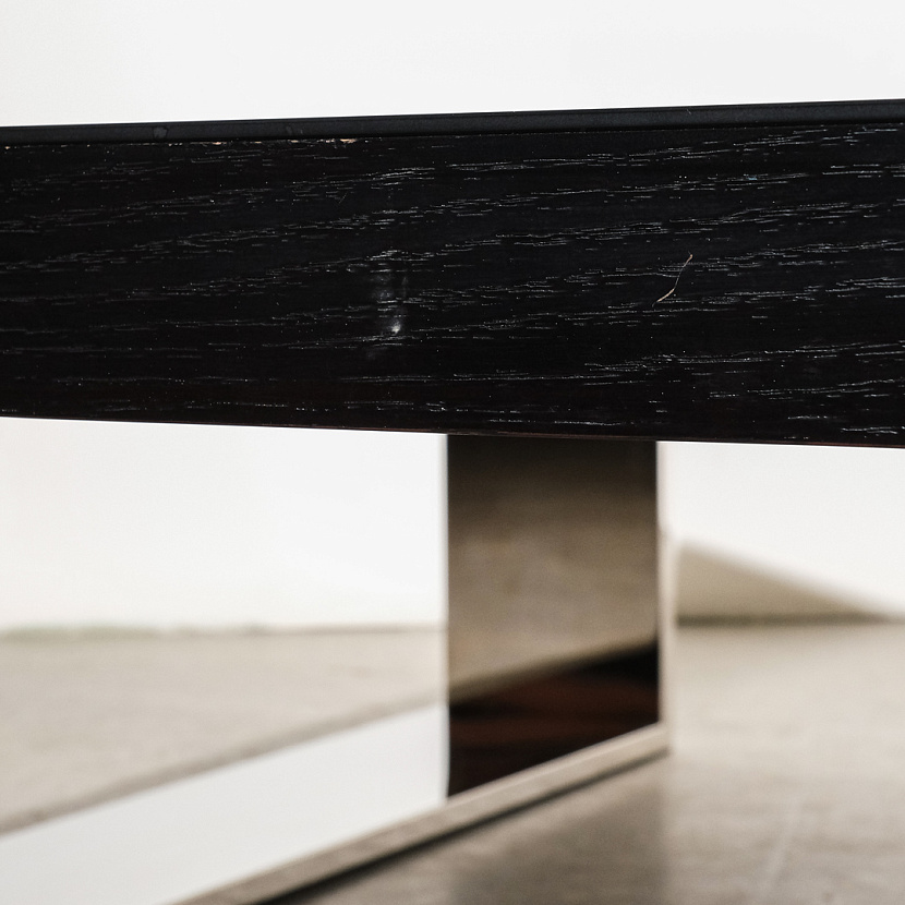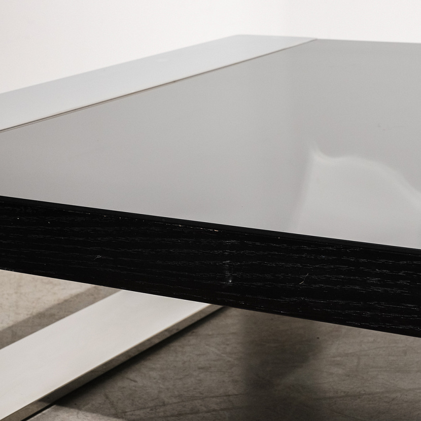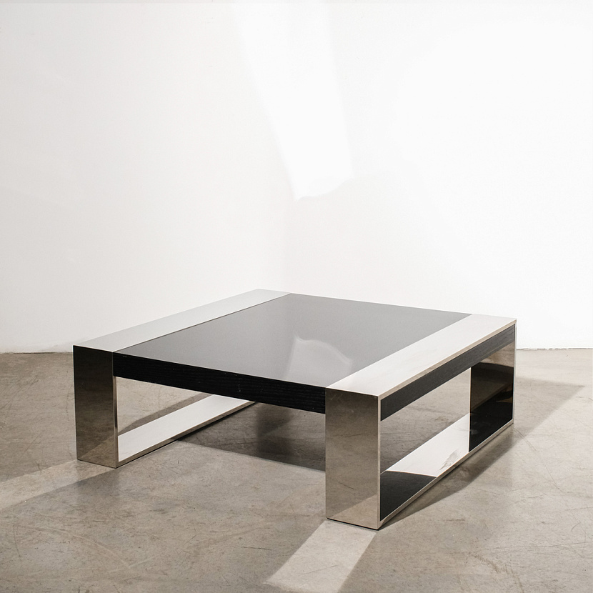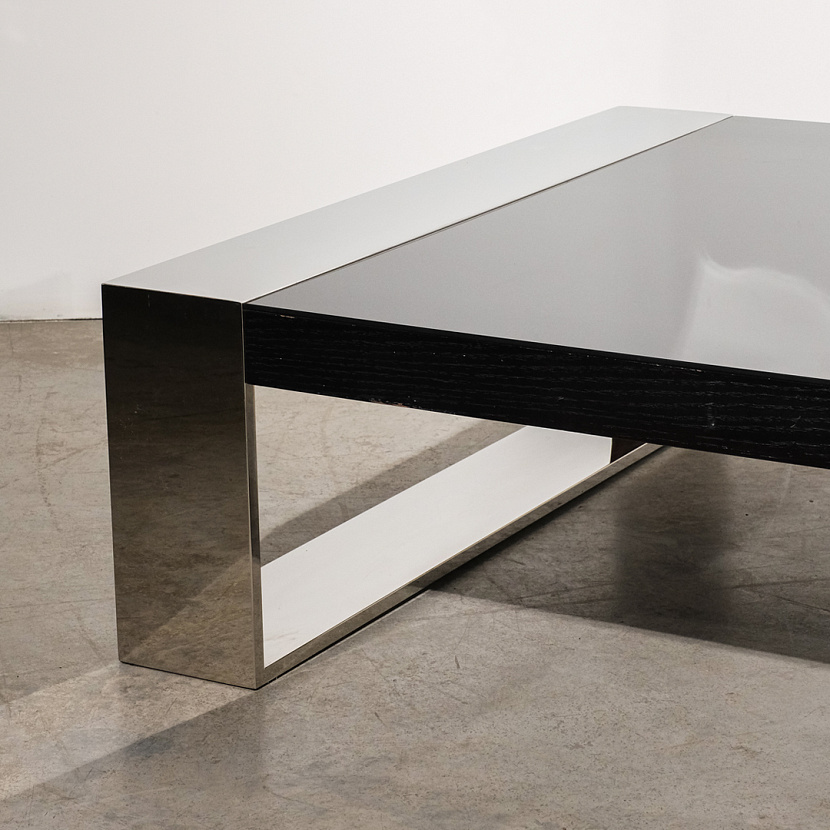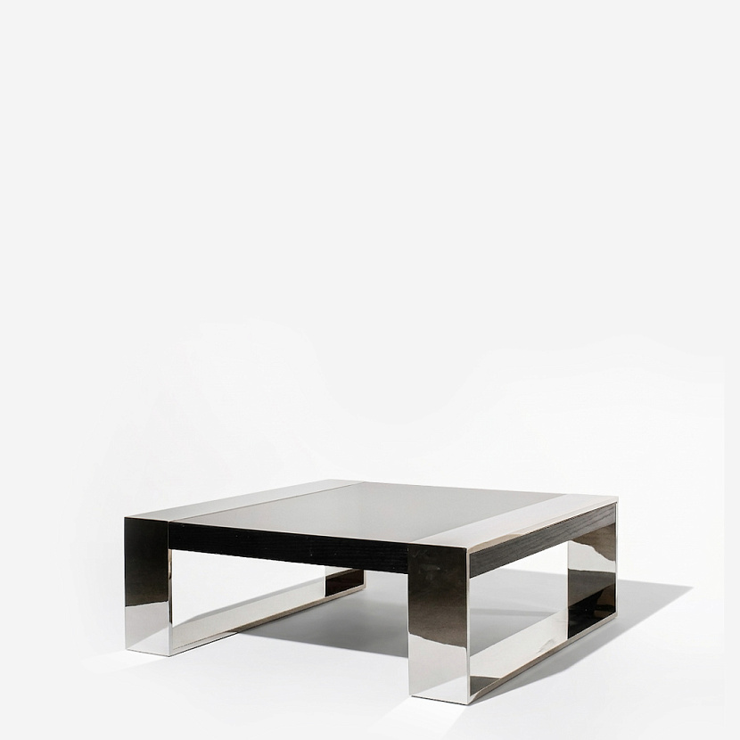 Сочетание металлических элементов и гладкости чёрной поверхности кофейного стола Effect фирмы Edouard Rambaud наполнит атмосферу вашего дома элегантностью. Чёткость линий и отражение окружающего пространства на поверхности стола легко впишут его в любой интерьер и придадут классической строгости.
