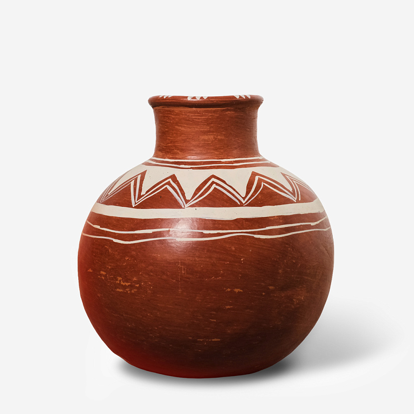 Ваза Jicayan I от Objetos Vivos. Изготовлена вручную мексиканскими мастерами. Поверхность сосуда украшает традиционный орнамент. Подходит для сухих и классических букетов.