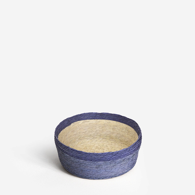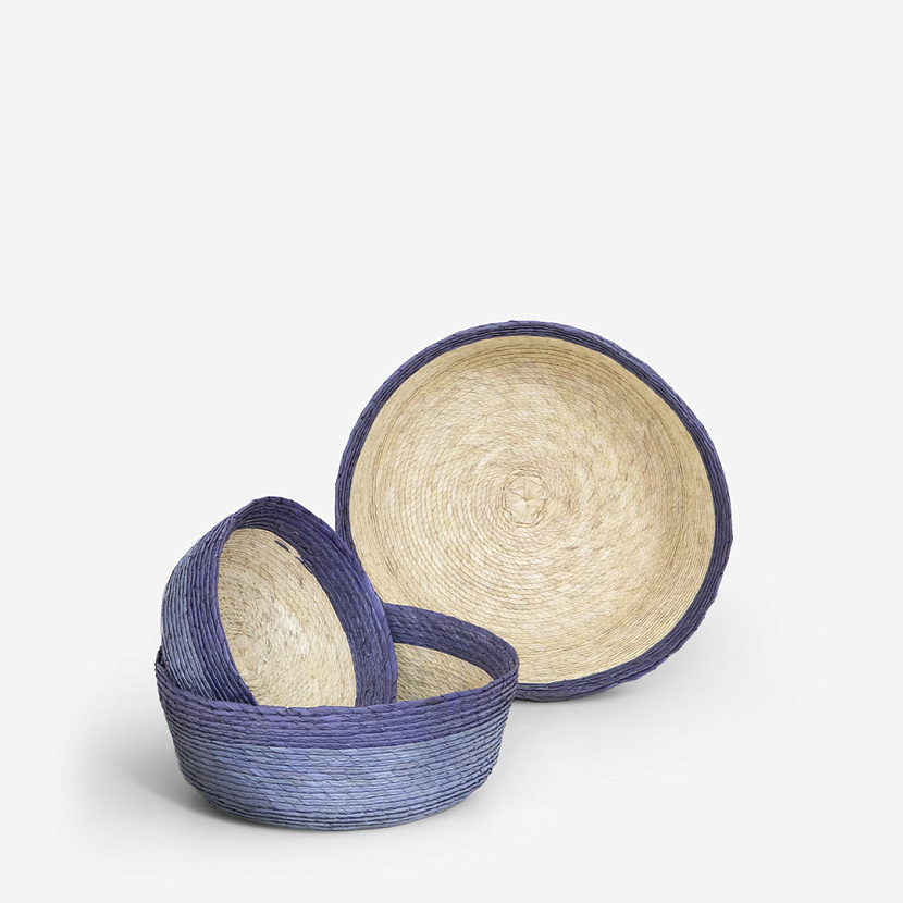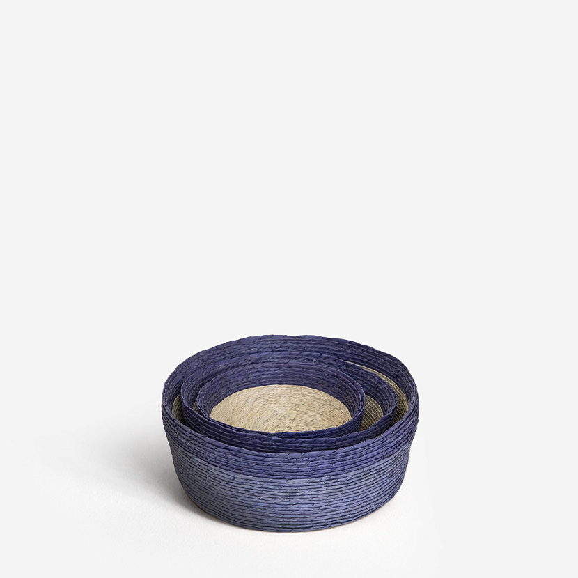 Набор двухцветных корзин Round от мексиканского бренда Makaua, в комплект входят три изделия размеров S, M и L. Цветовое решение — Mar. Небольшие корзины отлично подойдут для хранения мелочей, сервировки блюд или фруктов.