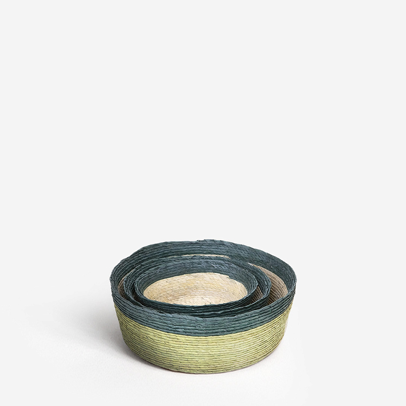 Набор двухцветных корзин Round от мексиканского бренда Makaua, в комплект входят три изделия размеров S, M и L. Цветовое решение — Pistache. Небольшие корзины отлично подойдут для хранения мелочей, сервировки блюд или фруктов.