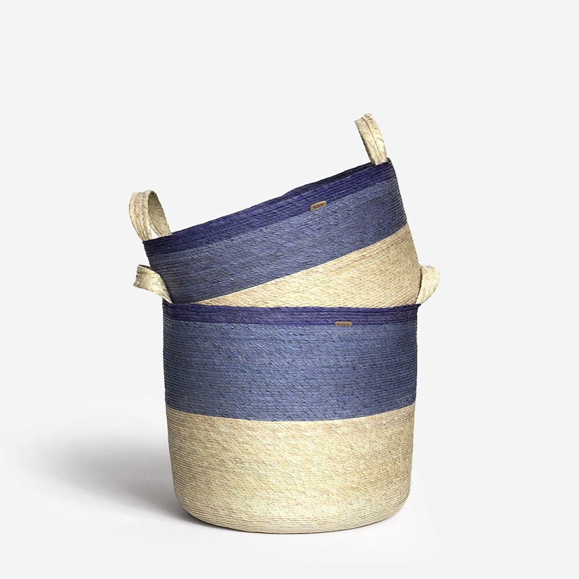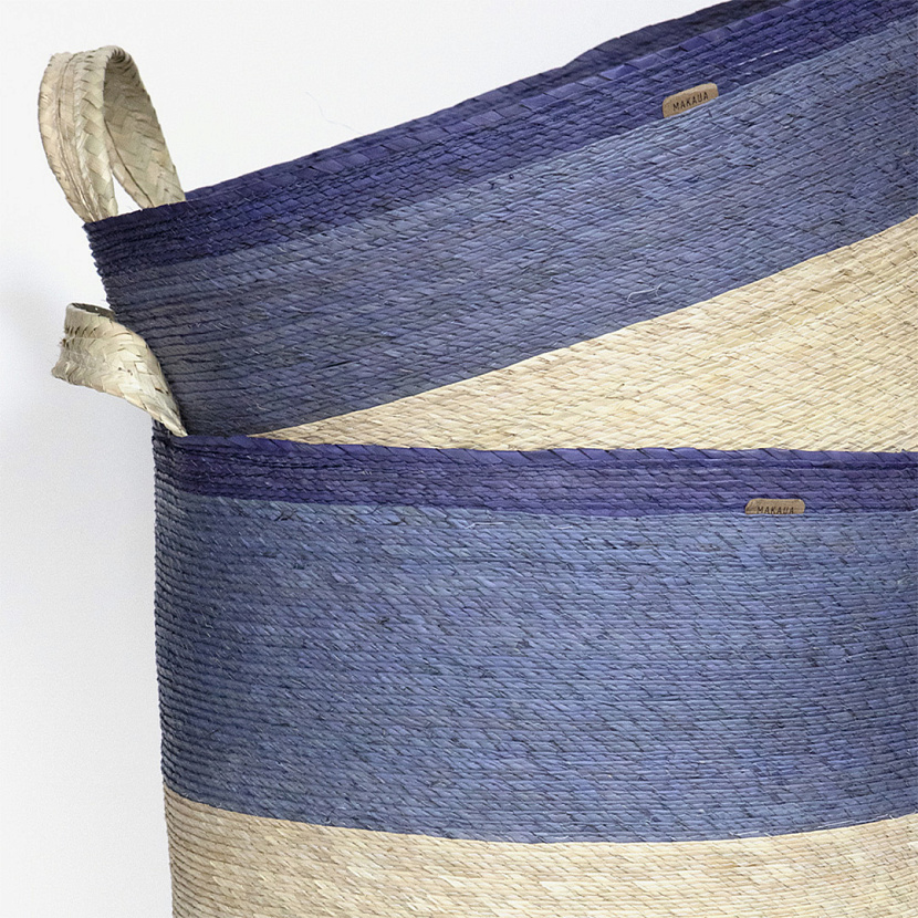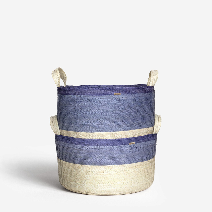 Набор корзин Tambo от мексиканского бренда Makaua, в комплект входят два изделия размеров S и M. Цветовое решение — Mar. Корзины с ручками отлично подойдут для хранения любых мелочей и украсят ваш дом.