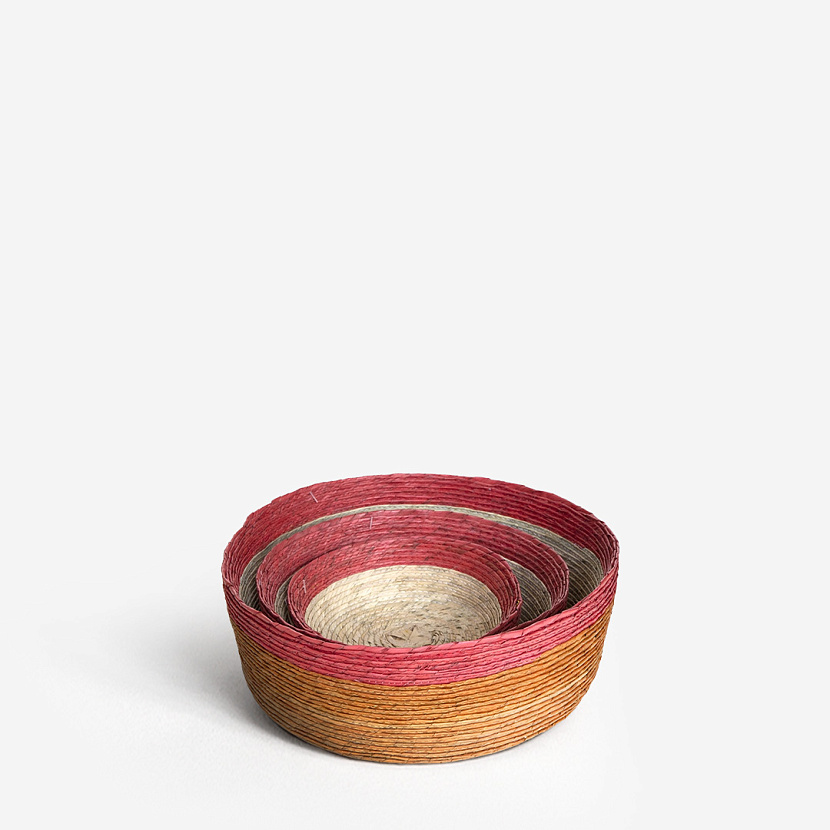 Набор двухцветных корзин Round от мексиканского бренда Makaua, в комплект входят три изделия размеров S, M и L. Цветовое решение — Canela. Небольшие корзины отлично подойдут для хранения мелочей, сервировки блюд или фруктов.
