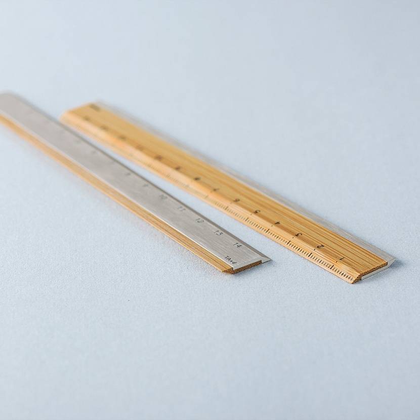 Линейка Bamboo от TA+D имеет две стороны: на первой преобладает металлическая часть, которой удобно разрезать бумагу, на второй - деревянная.